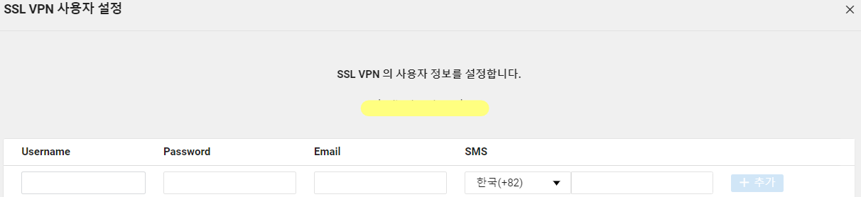 Username이 ID라서 원하는 ID 적어주고 Password, Email, SMS를 추가해주면 됩니다.