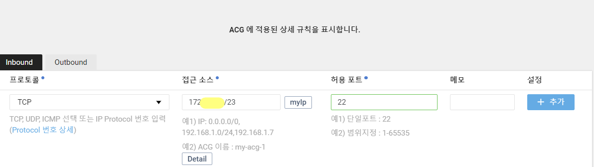 SSL VPN 생성이 완료되면 ACG 설정을 해주어야합니다.