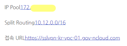 SSL VPN 생성이 완료되면 메일로 IP Pool과 접속 URL을 전송해줍니다.