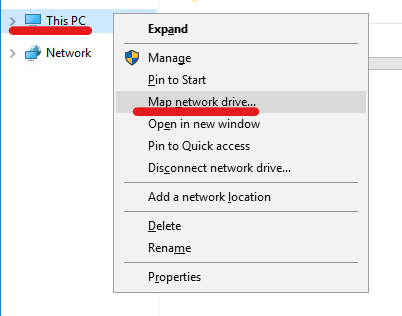왼쪽 This PC에서 오른쪽 마우스 클릭 후 Map network drive를 선택해줍니다.