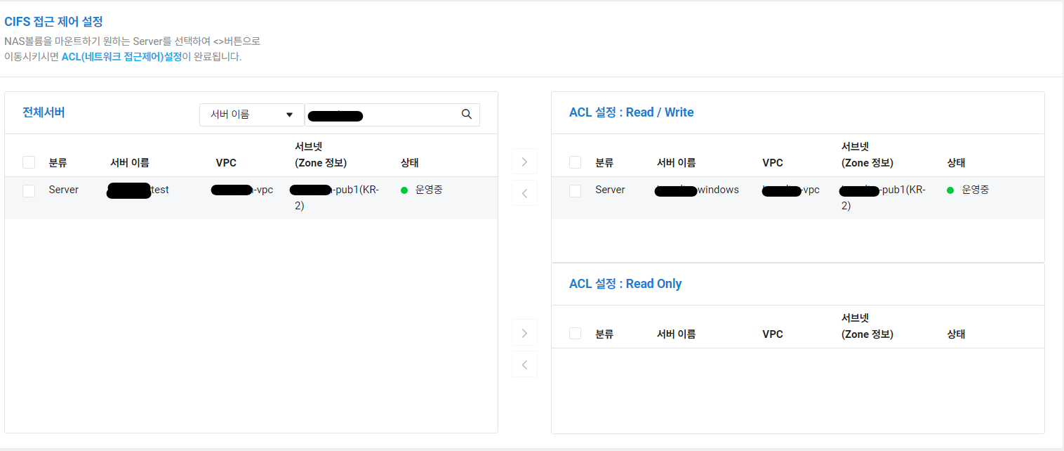 NAS의 접근할 서버가 Read/Write가 필요한 서버인지 Read만 필요한 서버인지 선택하여