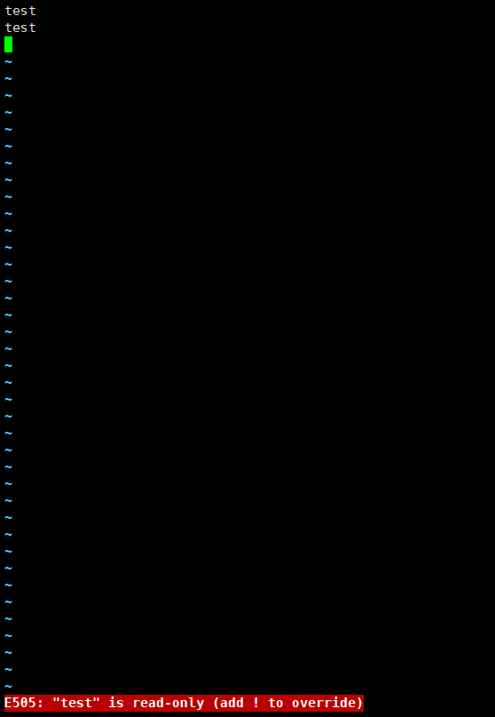 E505: "test" is read-only (add ! to override) 와 같은 명령어들이 발생하는 경우가 있다.
