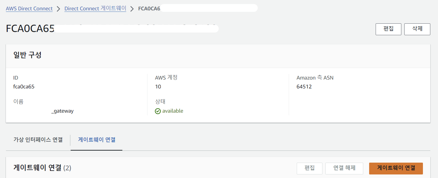 - 콘솔 → AWS Direct Connect → Direct Connect 게이트웨이 생성