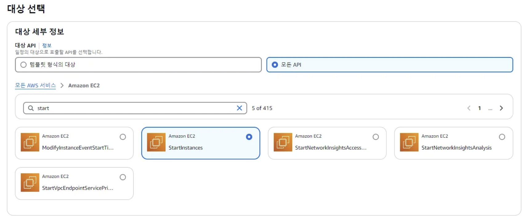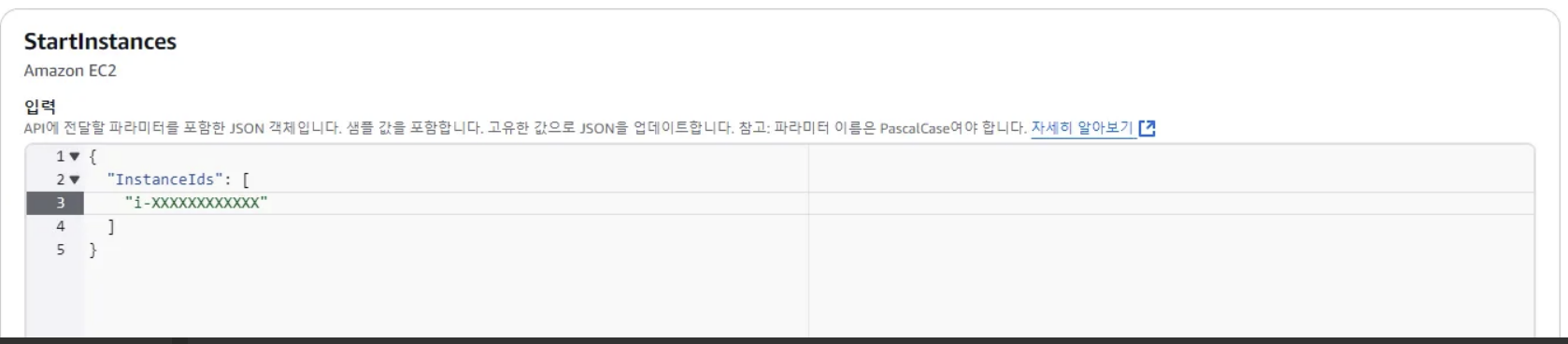- 인스턴스 중지는 API 선택 단게에서 start 대신 StopInstance로 바꿔주면 됨.